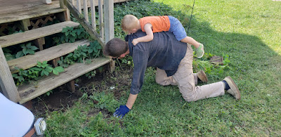 Today was rain, then humidity and sun during the work to reinforce the front and rear stairs at Jake's house. Then rain again, then Emerson made us all a delicious dinner.